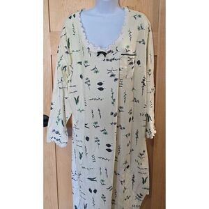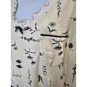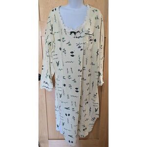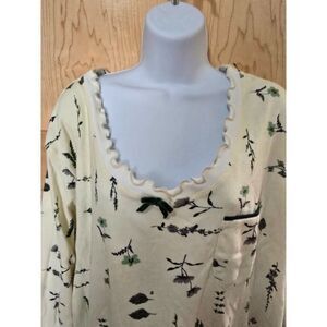 Cream Floral Nightgown With Ruffled Neckline & Pocket warm soft