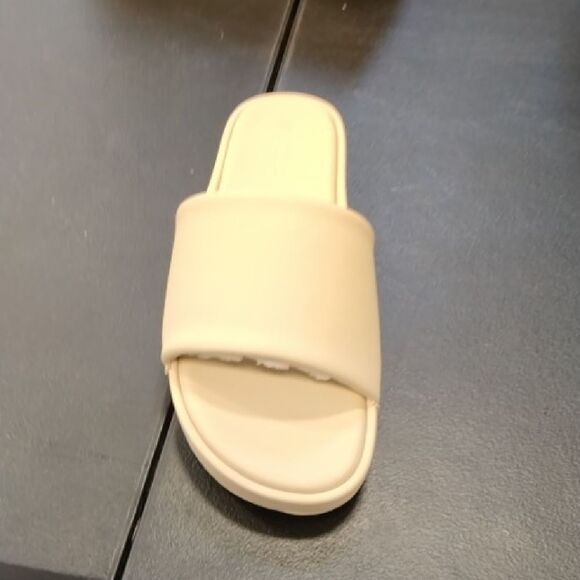Stylish cream slide sandals. Perfect for casual wear.