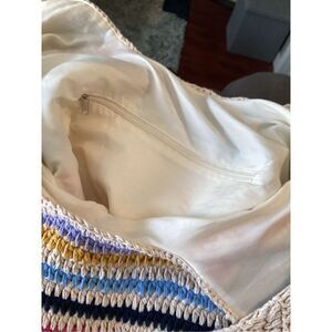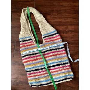 Cream Striped Crocheted Festival Bag