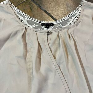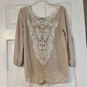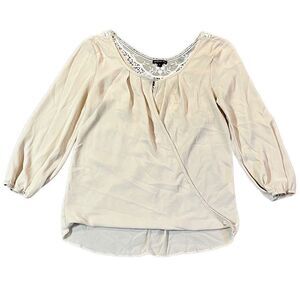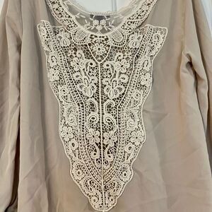 Cream/Tan Crossbody Wrap Blouse with Lace Back Small