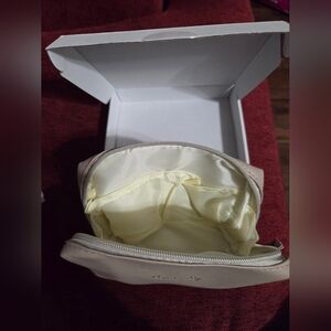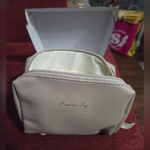 Elegant cream cosmetic bag with a sleek design. Perfect for organizing your essentials.