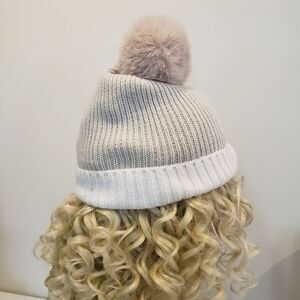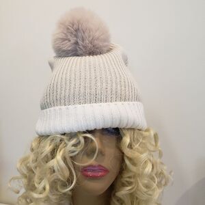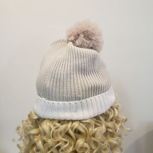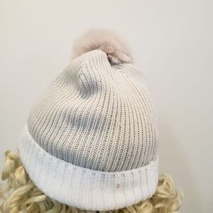 Elevate your winter wardrobe with this chic cream/white OS beanie featuring a playful pom-pom.