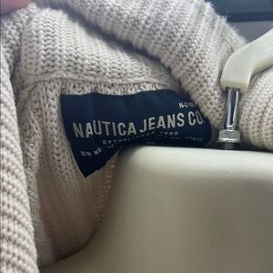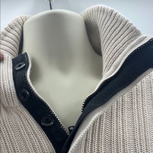 Cream Zip Up Sweater with Ribbed Knit and Mock Neck