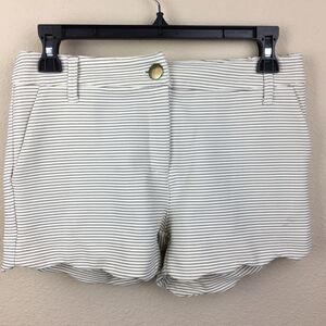 Cream and Blue Pinstriped Scalloped Shorts Size S