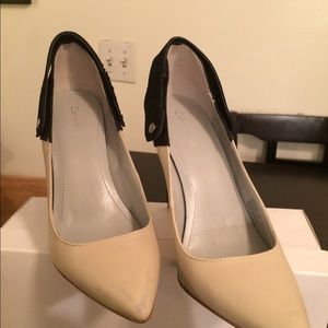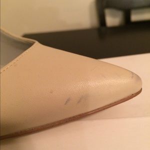 Except for a couple of very light visible scratches, these shoes are in perfect condition. The strap can be pushed back or can be worn in front Mary Jane style.
