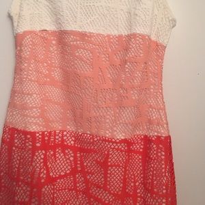 3 tone dress. Fits shape so well. Attached and included lining. Fits a size 8 person well. I'm 5'5 and it hit between mid thigh and knee length.