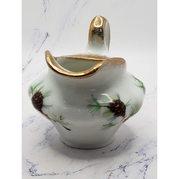 Creamer Vintage White With Porcelain Pine Branches and Gold Trim