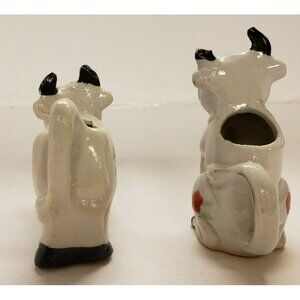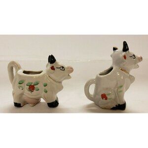 Adorable miniature cow creamers set of 2, hand-painted in Japan. Perfect for adding a touch of vintage country charm to your kitchen or dining table.
