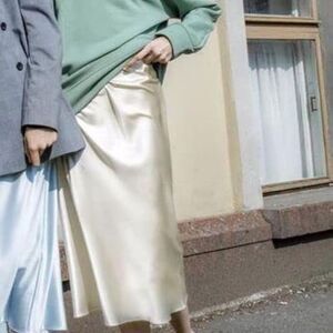 Beautiful a-line, silky satin-like midi skirt for women. Whether teamed with boots and knits in the winter or paired with a matching sandals and camisole in fall/summer,the high waist skirts is always a stylish choice.