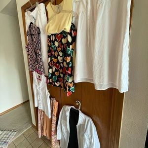 This is a collection of clothes in the lovely color way of various oranges/tangerine/salmon. Scarves and jewelry to match. All listed separately but wanted to show the collection. Cruise-wear, casual, dress up or down with slacks, shorts and jeans that I also have listed.