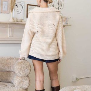 Creamy Knit Collar V-Neck Long Sleeve Sweater