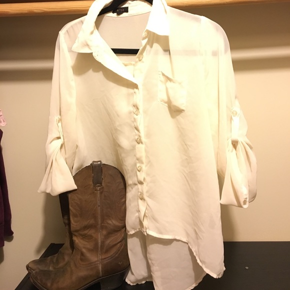 Creamy button up, sheer top. Fits small, medium, large (: