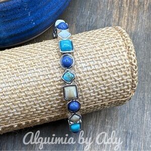Creamy white agate turquoise and lapis lazuli beaded bracelet