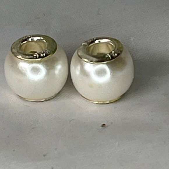 Creamy white faux pearl lot of 2 sterling silver core charm beads bracelet m.