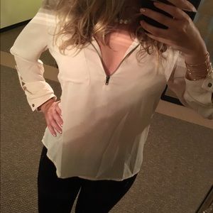 Creamy Sheer Blouseđź‘ đź’„ With a Sexy Zipper upfront. I just got it and wore once (plus picture) Perfect condition.