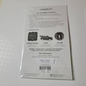 Create it holiday cotton fabric iron on appliques 3 piece wreath, red truck , new in package .
