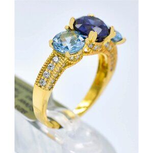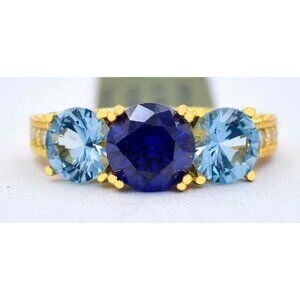 Created 2.36 Ct Blue Topaz, Tanzanite & White Sapphire Ring 14k Gold Plated