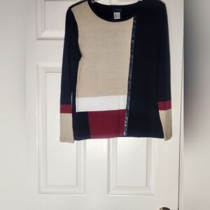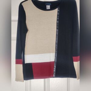 Creation L 8 Black Lngslvs Colorblock MERINO WOOL Blend Women's Sweater