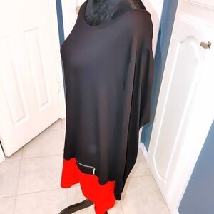 Creation L Black & Red Tunic W Decorative Zippers size 14. EUC