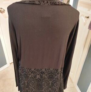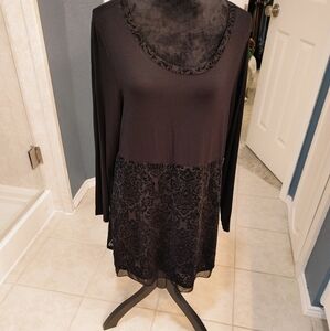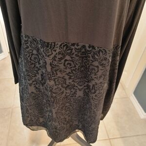 Creation L black tunic w faux velvet on bottom portion and neck. Has black liner.