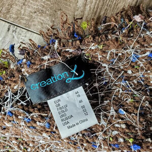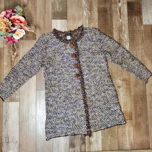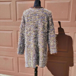 Creation L Brown White Blue Green Fuzzy Women's Cardigan Duster Sweater Size 12