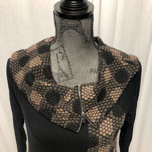 Creation Top Womens Size Small Black Brown Stretch Textured Cowl Neck Sweater