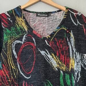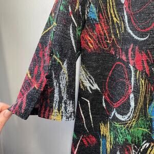 Creation 3/4 sleeve black lightweight sweater tunic with colorful swirls and scribbles in Excellent pre-owned condition!
