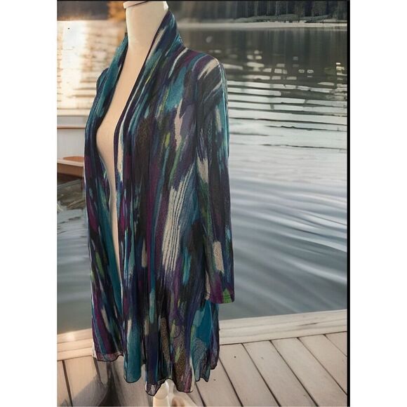 Creation Womens Plus Size 3X Open Front Cardigan Blue Purple Watercolor NWT