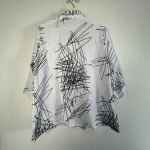 Creation Womens White & Black Abstract Print Button-Up Shirt Large 3/4 Sleeve