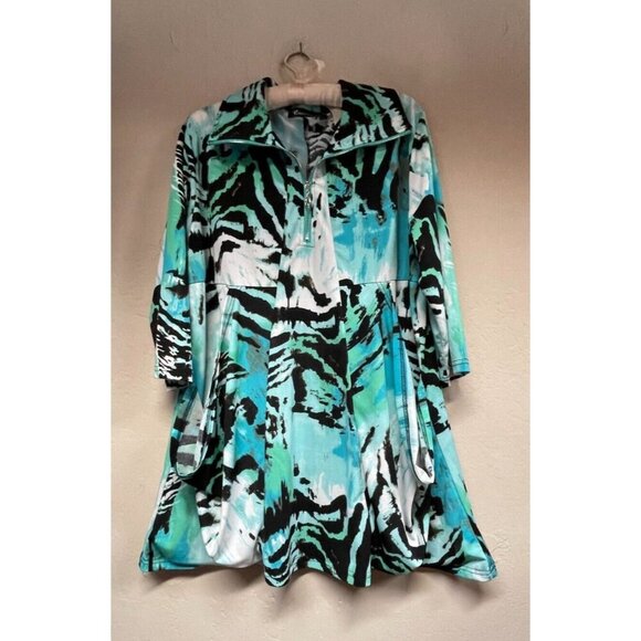 Creation Womens XXL 1/4 Zip Mock Neck Drape Pockets Tunic Top Printed Stretch