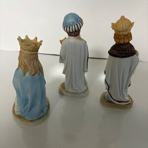 This set of ceramic figurines depicts the Three Wise Men in hand-painted detail, crafted by Creative Art Flowers Inc, made in Taiwan.
