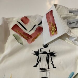 Creative Artwear Hand Painted Button Down Shirt Signed By Artist Women's M
