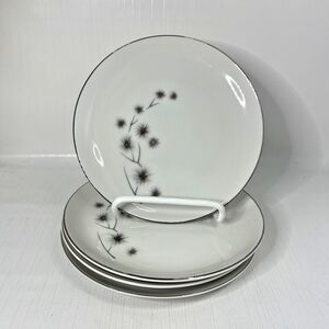Creative China Atomic Bread Plate Set 4 Replacement Platinum Starburst MCM Vtg. Measures approx. 6 5/8" in diameter.
