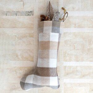 Creative Co-Op Brushed Plaid Beige & Taupe Flannel Stocking/NWT
