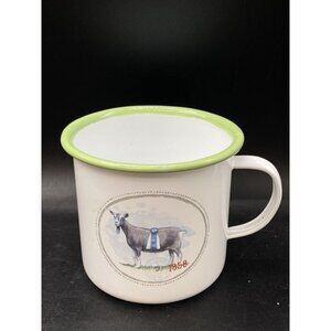 Creative Co-Op Chad Barrett Blue Ribbon 1858 Goat Design Metal Enamelware Mug