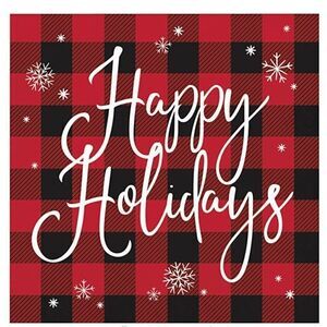 Creative Converting Black and Red Plaid Happy Holidays Lunch Paper Napkins, Mult