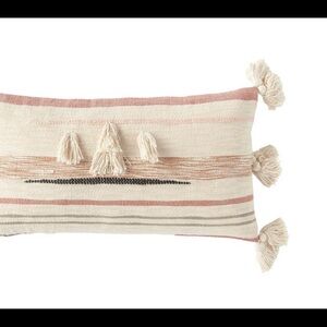 Creative Co-op Cream Cotton Kilim Lumber Brown, Pink & Black Stripes & Tassels Pillows, Pink