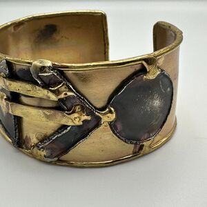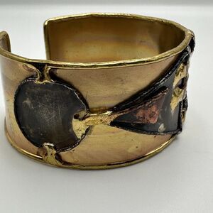South African handmade Creative Copper copper bangle bracelet with abstract design. 1 1/8 inch wide, 2.5 inches in diameter. $65 retail
