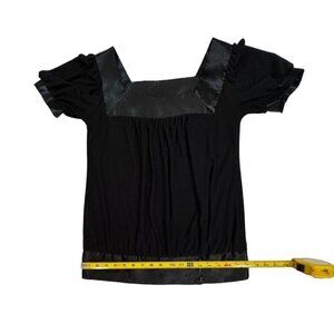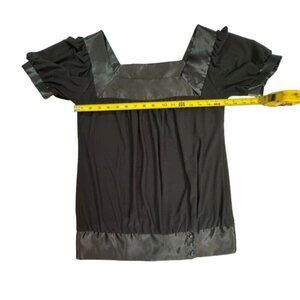 Creative Design Works Black Blouse W/ Satin Trim & Buttons Women Small Dressy