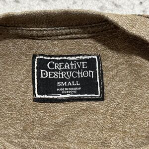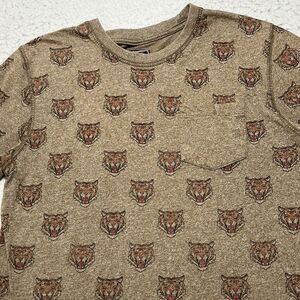 Great condition Creative Destruction lightweight short sleeve crewneck graphic t-shirt in a men's size small. Brown tee with all over printed tiger pattern and pocket on chest. No button for pocket.
