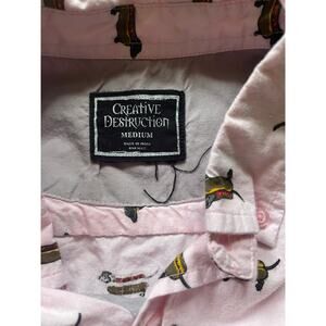 Creative Destruction Pink Casual Button Down Shirt Wiener Hot dogs Surf Size Med