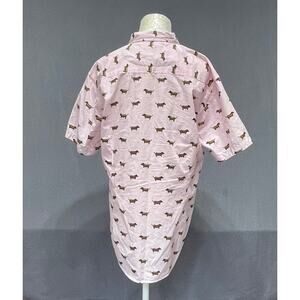 Creative Destruction pink button-up shirt sz M Playful whimsical dachshund