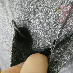 Very cool grey space dye tee with distressed flamino all-over print and a chest pocket with a four hole button. The neck is a bit stretched out.