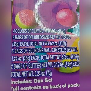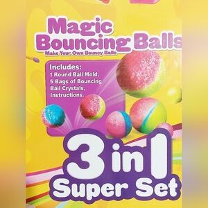 Enjoy endless hours of fun with this amazing creative kids 3 in 1 super set that includes Sand Art, Clay Art and Magic Bouncing Balls. Whether your making your own magic bouncy balls or sculpting fun clay or sand art, your super set offers infinite possibilities in exercising your imagination and creativity. Recommended for ages 6 years and up.