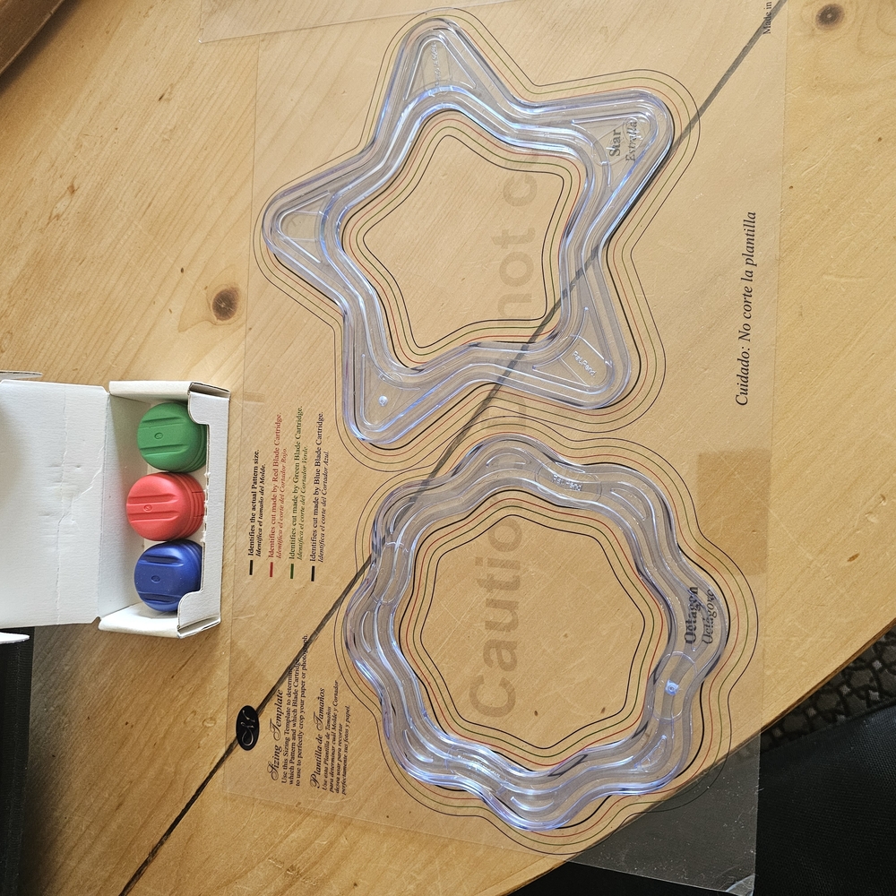 6 sets of Creative Memories cutting templates, 3 cutting blades, cutting mat. Like new, excellent condition.