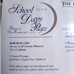 Creative Memories School Days Pages 12 x 12 15 Sheets 30 Pages Refill RCM-12SD