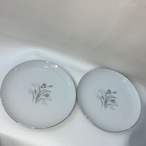 Creative Royal Elegance Fine China Japan 9 1/4 Inch Round White Silver Trim Set2