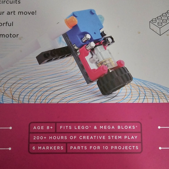 Unleash your child's imagination with this engaging STEM building kit. Compatible with popular block brands for endless building possibilities. Parts included for 10 projects. Create fun, colorful designs with a motor and a wheel - the circuit version of spirograph! 200+ hours of creative STEM Play! Great way for a child to discover how circuits work.