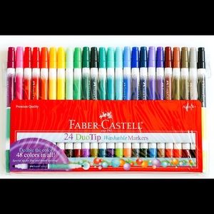 24 (48) due tips washable markers with (3) small, medium & large pens along with a pink organizer bag