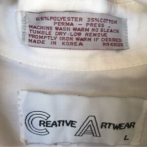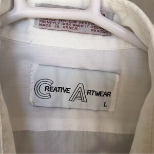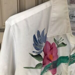 Creative art ware button down shirt. Long sleeves collar, cuffs. SzL floral